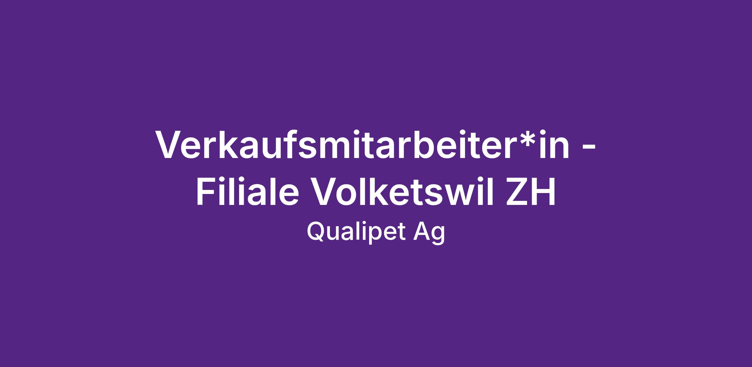 QUALIPET ist die Nummer 1 im Schweizer Zoofachhandel mit über 80 Filialen und dem Hauptsitz in Dietlikon, beschäftigt über 800 Mitarbeitende, rund 100 davon in Ausbildung. QUALIPET bietet das grösste Haustierbedarf-Sortiment in der Schweiz an, welches in den Filialen und im Onlineshop erhältlich ist. Neben hochwertiger Nahrung für alle gängigen Haustiere, bietet QUALIPET auch ein umfangreiches Sortiment an Zubehör und Accessoire für Haustiere an. Als Schweizer Familienunternehmen steht QUALIPET für eine artgerechte Haltung von Tieren, für Beständigkeit und Qualität. Dabei stehen die Haustiere, die Kundschaft und die Mitarbeitenden gleichermassen im Mittelpunkt des Interesses.