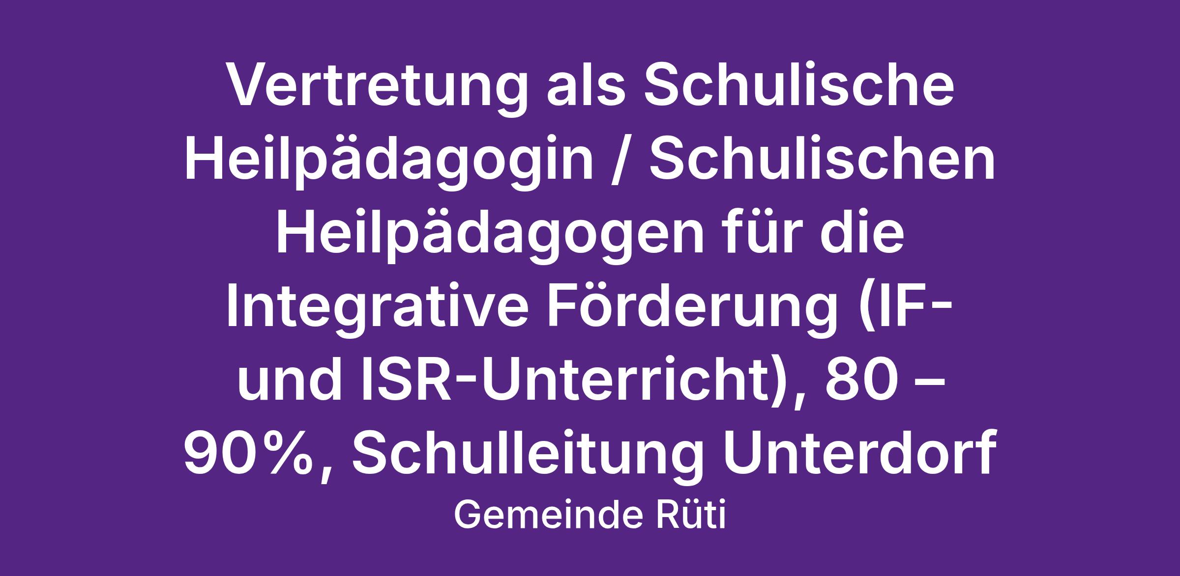 Vertretung als Schulische Heilpädagogin / Schulischen Heilpädagogen für die Integrative Förderung (IF- und ISR-Unterricht), 80 – 90%, Schulleitung Unterdorf