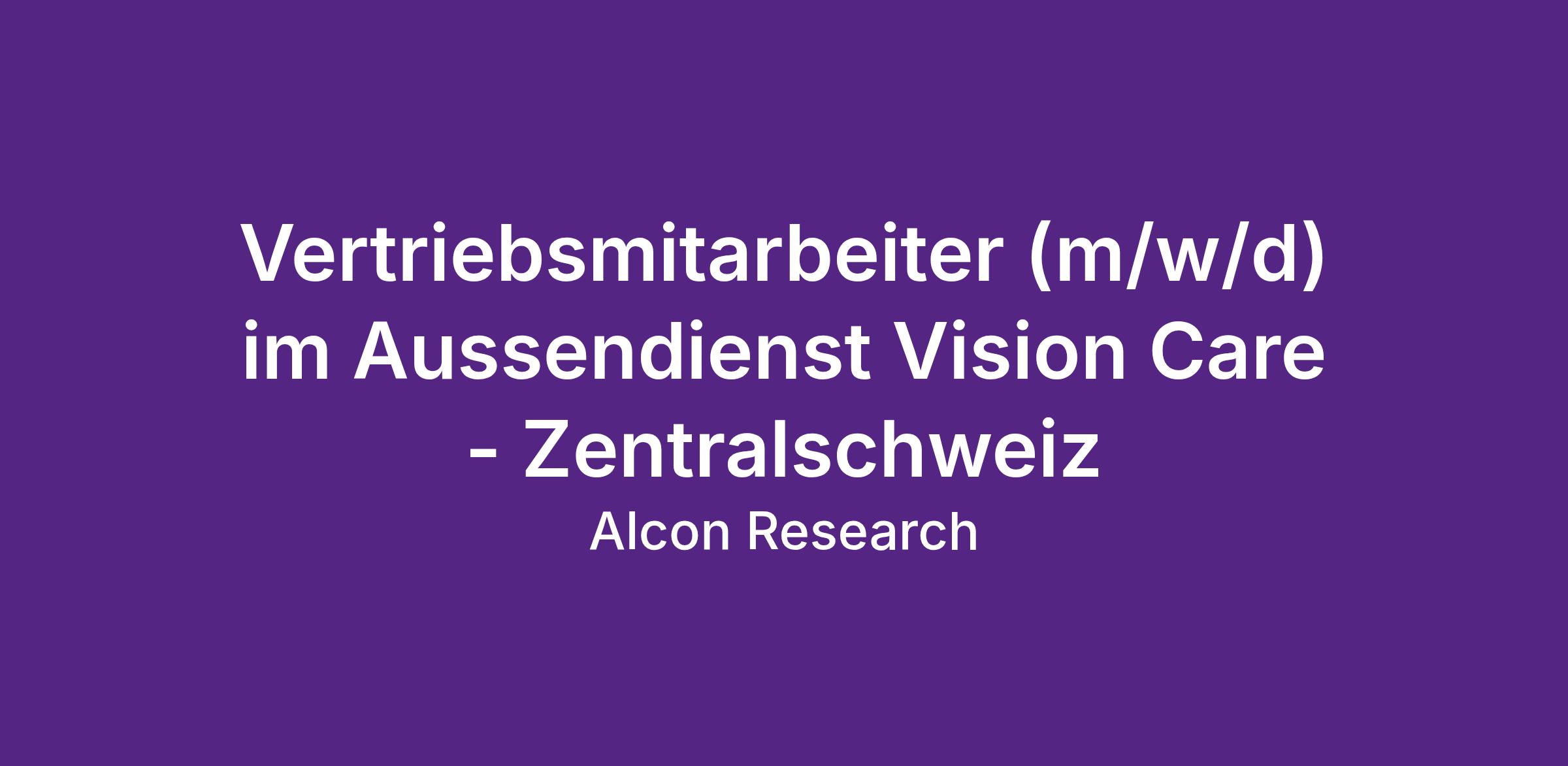 Als Vertriebsmitarbeiter (m/w/d) im Aussendienst für unser Vision Care Team in der Schweiz übernehmen Sie die selbständige Betreuung der zugeordneten Kundengruppen (Optiker) im Gebiet Zentralschweiz. Der Produktbereich umfasst Kontaktlinsen und Pflegemittel und das Alcon Dry Eye Portfolio. Der Dienstsitz befindet sich im Home Office.