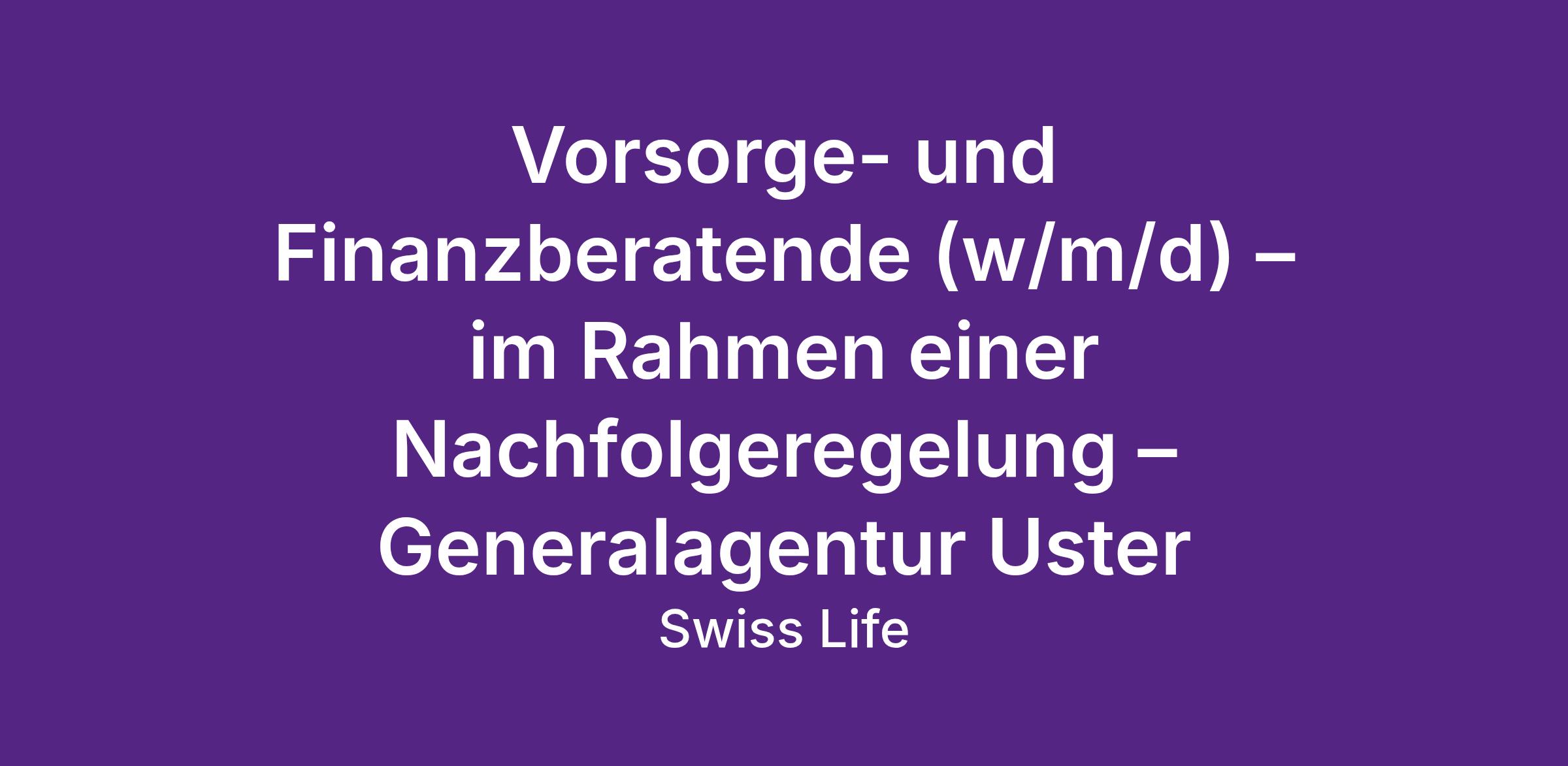 Would you like to help people to lead a self-determined life? And do you want to be given the creative scope to reconcile your professional and personal ambitions? Then we can offer you an exciting prospect: as part of the Swiss Life sales force, you can organise your working day independently. You will reach your targets as you see fit and with the support of a practised team.