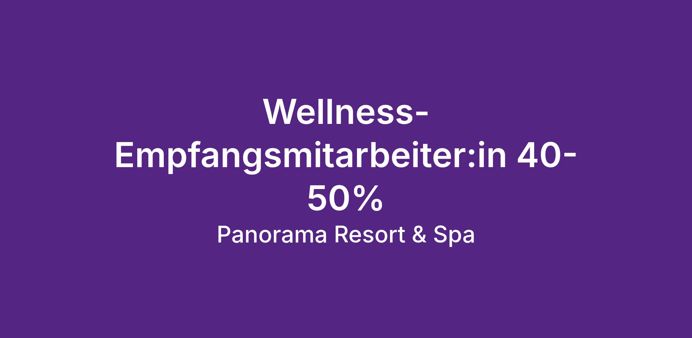 Unsere rund 150 Mitarbeitenden bewegen sich in einem fordernden Arbeitsumfeld, welches viele individuelle Entwicklungsmöglichkeiten bietet und von einem kollegialen Umgang geprägt ist. Zur Ergänzung unseres Empfangsteams sind wir per 1. Mai 2026 oder nach Vereinbarung auf der Suche nach einem/einer Wellness-Empfangsmitarbeiterin mit einem Pensum von rund 40-50%.