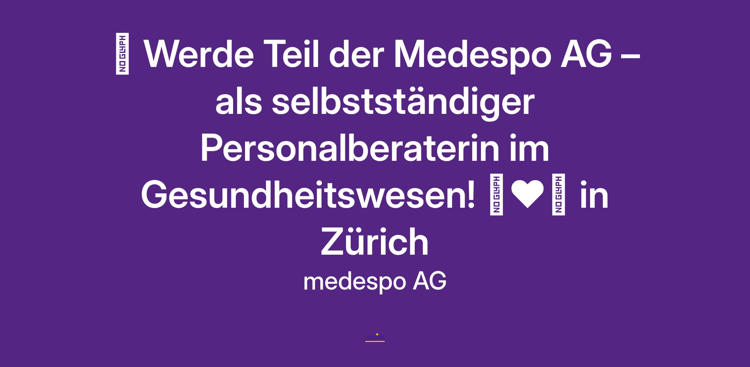 🌍 Werde Teil der Medespo AG – als selbstständiger Personalberaterin im Gesundheitswesen! 💼❤️‍🩹 in Zürich