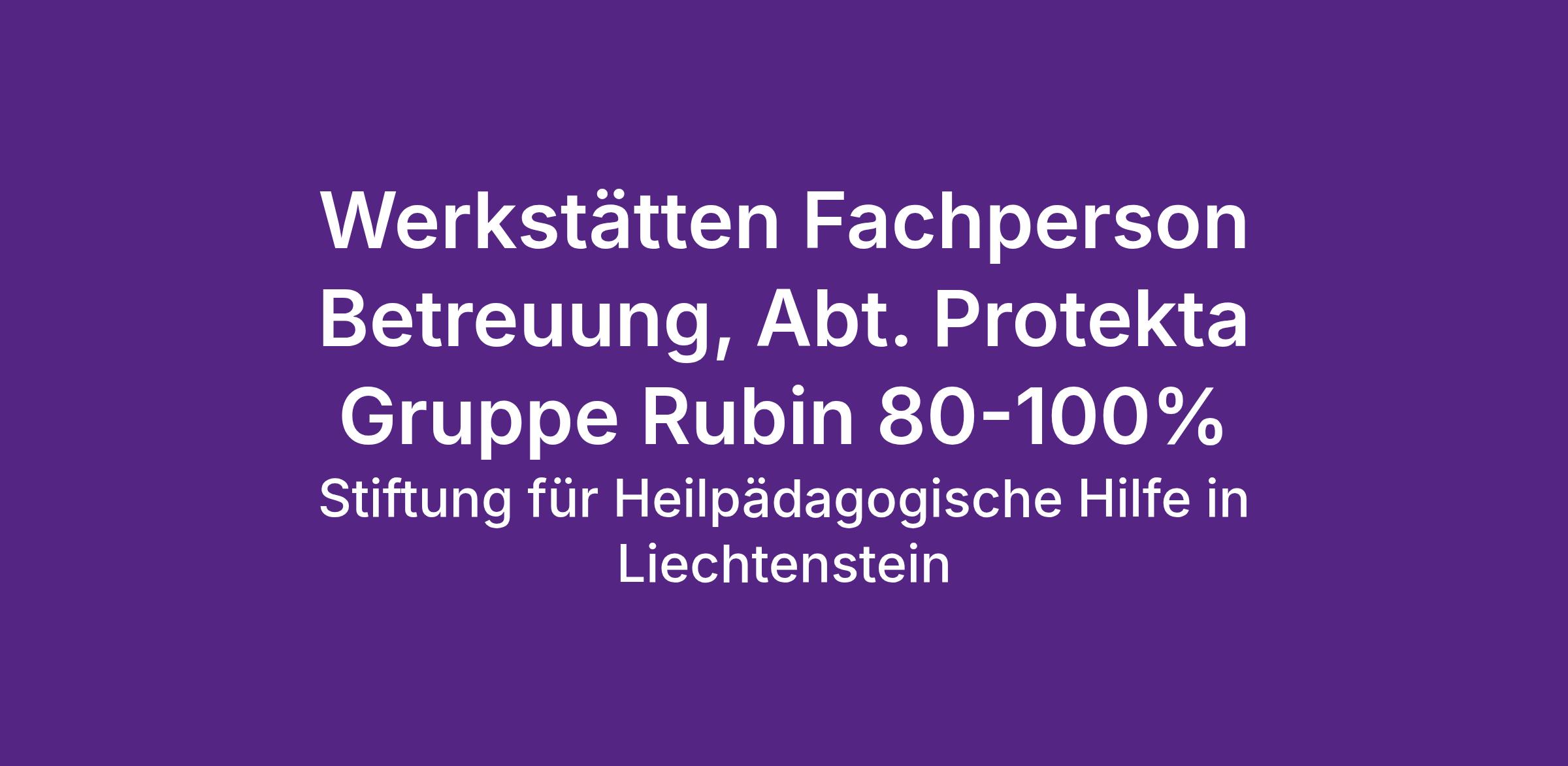 Für den Bereich Werkstätten, Abteilung Protekta / Beschäftigungsgruppe Rubin suchen wir per sofort oder nach Vereinbarung Verstärkung für unser Team!