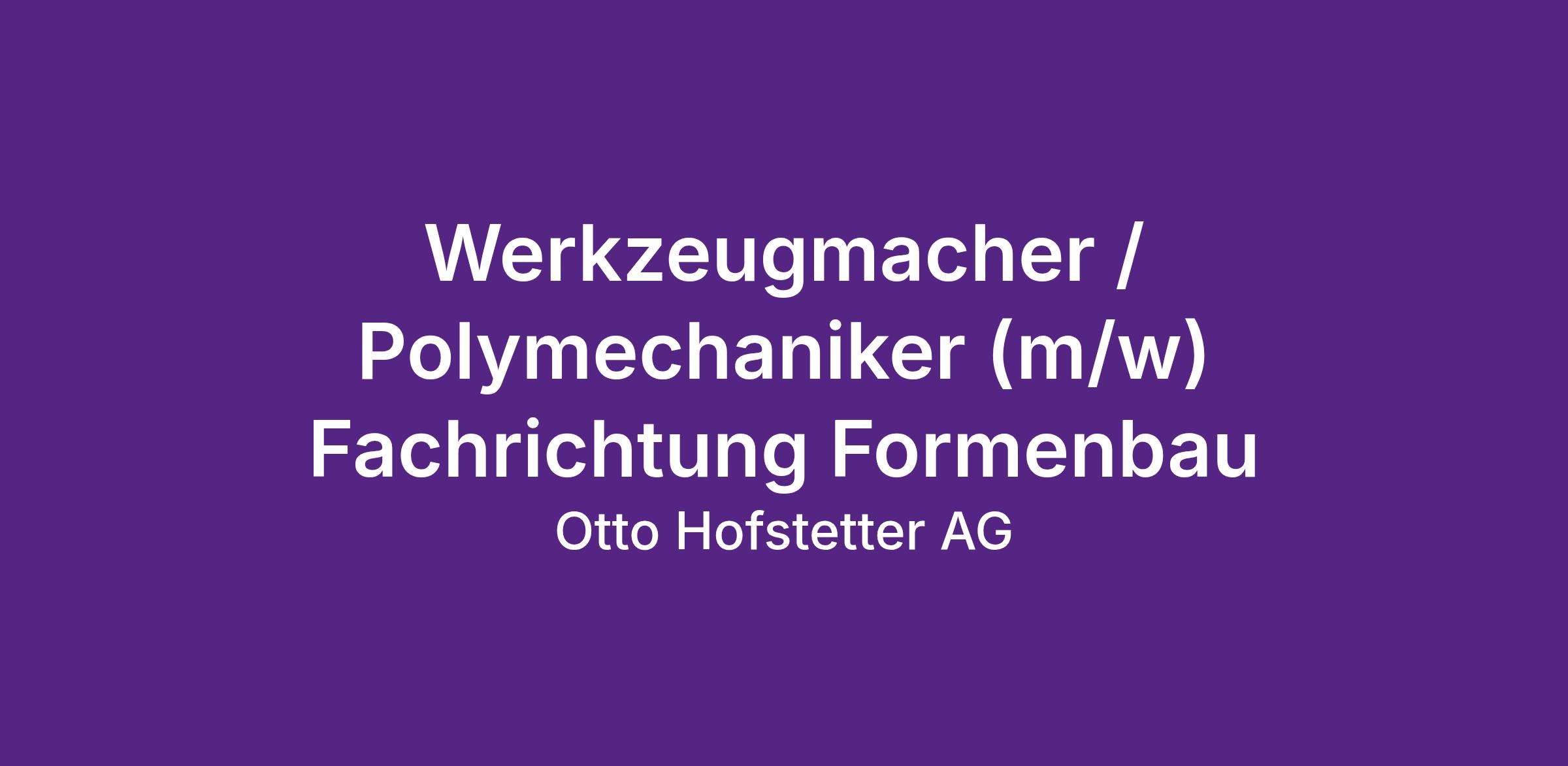 Werkzeugmacher / Polymechaniker (m/w) 100% Fachrichtung Formenbau