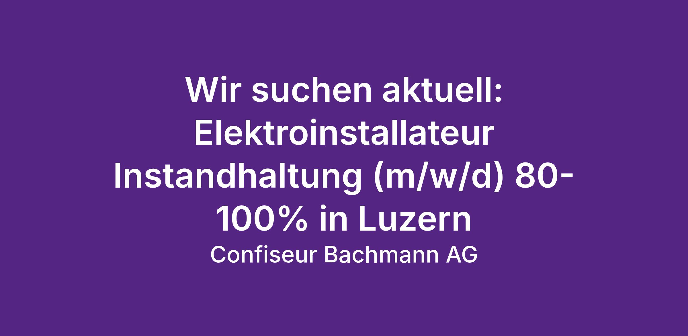 Wir suchen aktuell: Elektroinstallateur Instandhaltung (m/w/d) 80-100% in Luzern