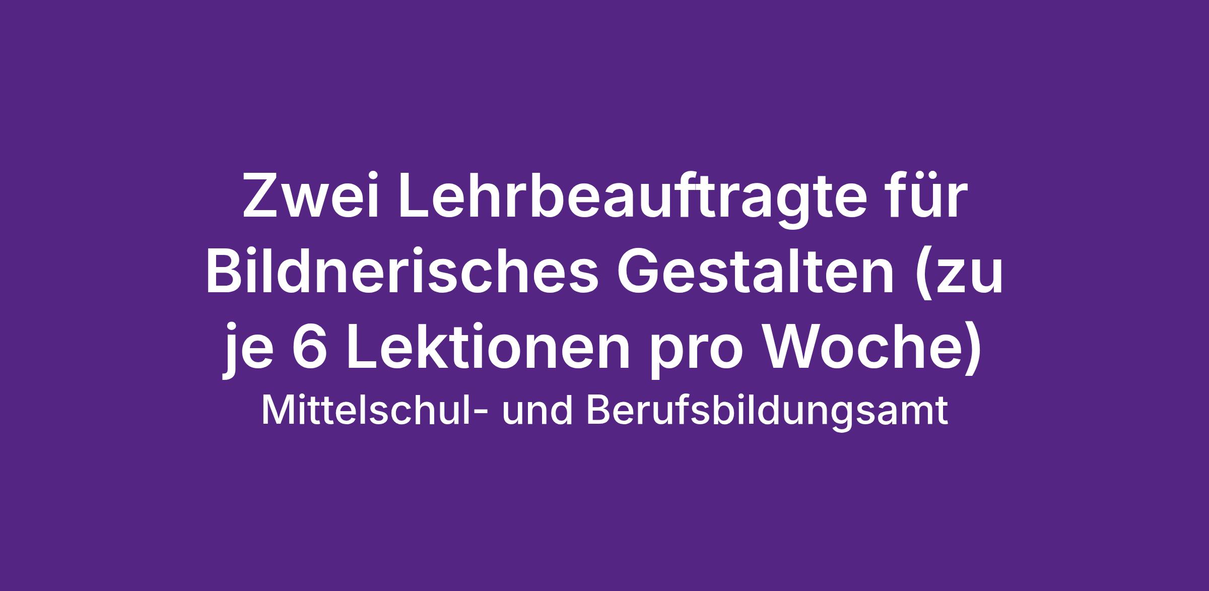 Zwei Lehrbeauftragte für Bildnerisches Gestalten (zu je 6 Lektionen pro Woche)